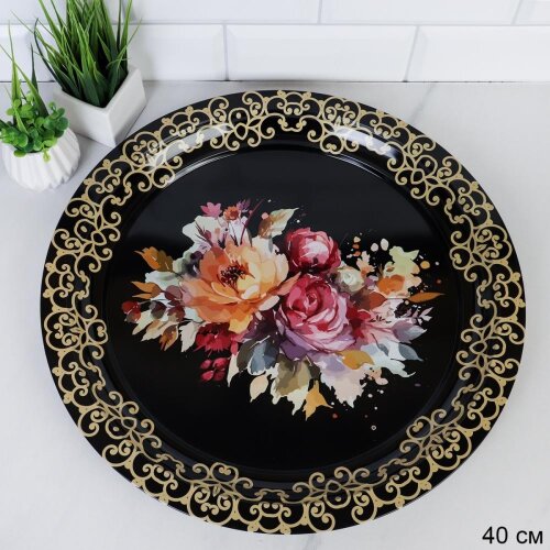 742154 (в уп.48шт.) - Поднос круглый 40см. Букет / MB-154 /, материал: металл эмаль.