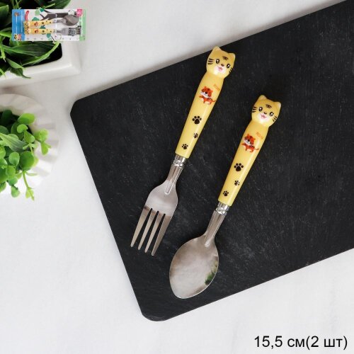 743364 (в уп.280шт.) - Столовые приборы 2 предмета, 15,5см. / YLL-364 /, материал: металл, пластик.