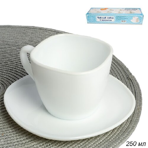 638681 (в уп.8наб.) - Чайный набор квадратный 12пр. 250мл, белый /FXB220/FBD220-6A (WHITE) цветная коробка, материал: стеклокерамика.
