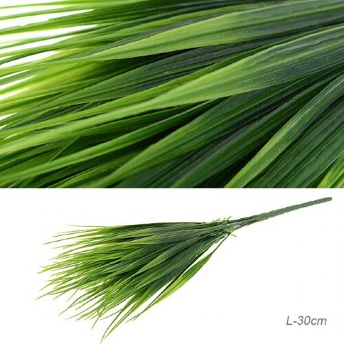 657826 (в уп.2/240шт.) - Лист искусственный Осока, L=33см. /AB45/, 7 веток, 14 листьев, материал: пластик.