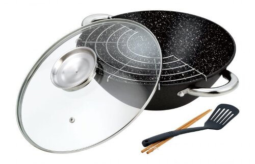BK-623 (в уп.4шт.) - Котёл чугунный со стекл.крышкой 28см. (3,6л.), хромированная решетка для гриля, нейлоновая лопатка.