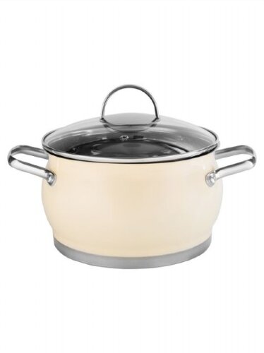HM58124 (в уп.4шт.) - Кастрюля 6,7л. (24*14 см) нержавеющая сталь 0,6 мм., крышка из закаленного стекла с отверстием для паровыпуска, 5-ти слойное термоаккумулирующее капсулированное дно (технология сендвич, алюминиевая пластина), ручки из цинкового сплава, индукция, цвет бежевый.
