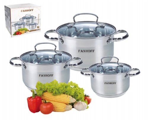 FH-52541 (в уп.4наб.) - Набор посуды 6пр. (Кастрюли с крышками 2,1л.-D16см, 2,9л-D-18см, 3,9л.-D20см.), материал: нержавеющая сталь.