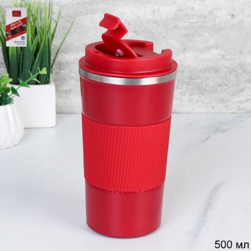 749883 (в уп.50шт.) - Термокружка 500мл, красная. / AW-1883 /, материал: металл, пластик.