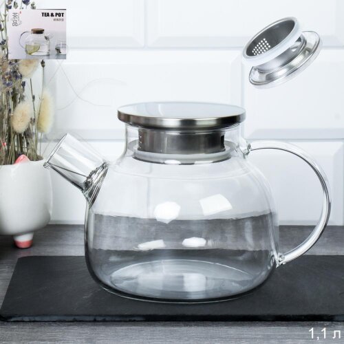 703648/727782 (в уп.46шт.) - Чайник заварочный 1100мл. / G125-77 / крышка стальная, материал: жаропрочное стекло, металл.