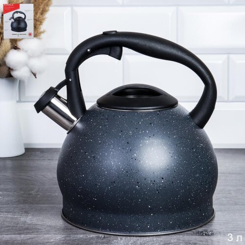 731438 (в уп.12шт.) - Чайник с крышкой 3л, ручка Бакелит / KISIGA / KG438 / 0,76 / индукция /трехслойное дно/, материал: металл, пластик.